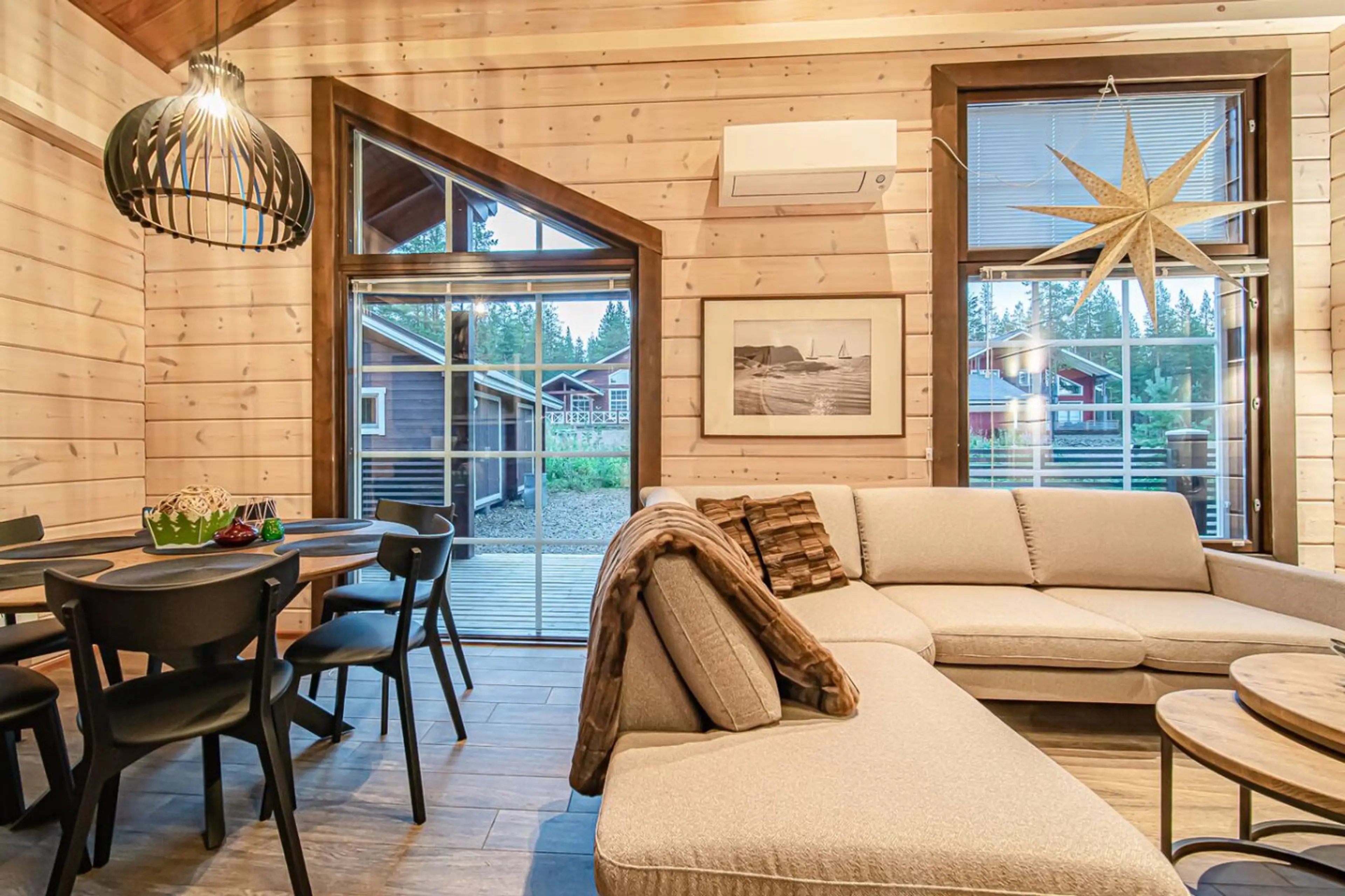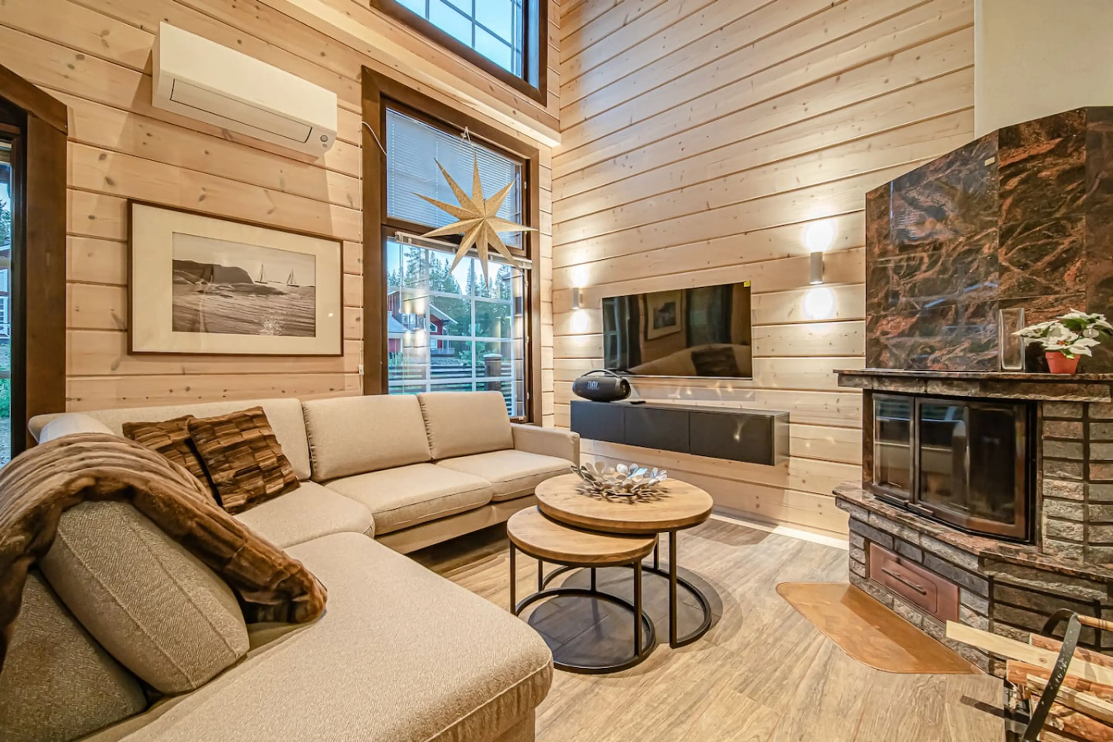 At Villa Polaris B you’ll discover the perfect blend of comfort and northern charm – a place where on clear nights, the northern lights may dance across the sky just above your doorstep. Situated in Levi just 4.2 km from the lively town center, Villa Polaris B is a 90m² semi-detached log villa desi...