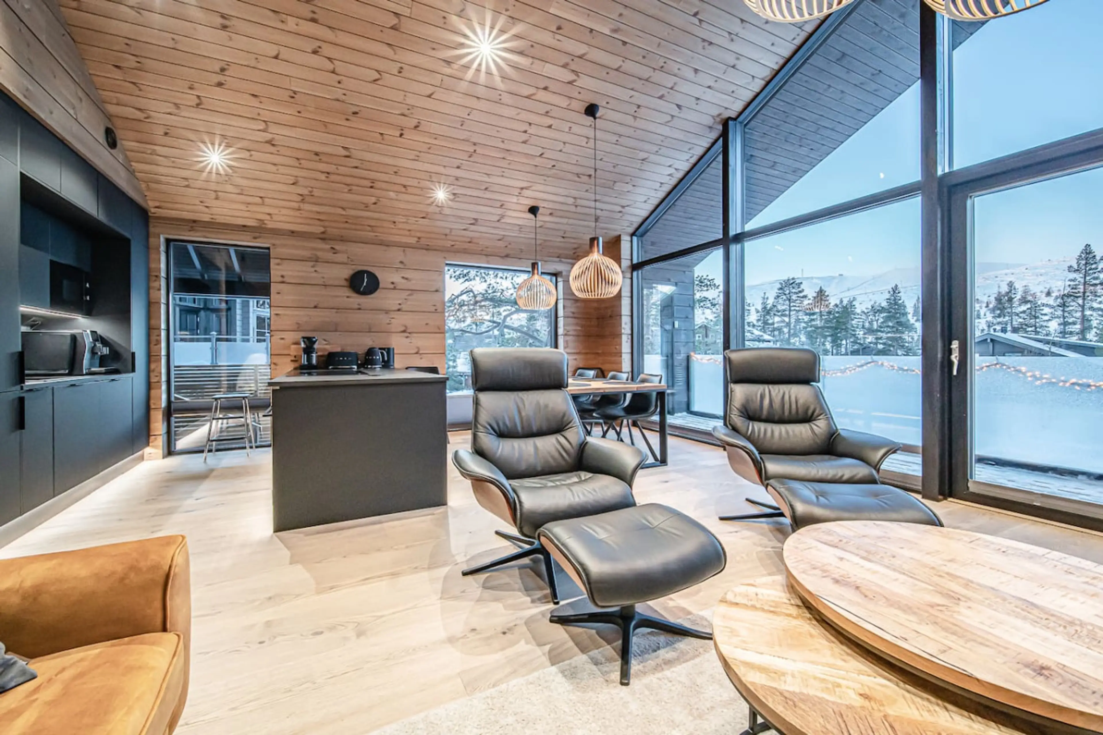 A stunning and high-quality semi-detached villa is located in Levi’s Utsuvaara, offering breathtaking views from the top of the fell. Villa Aurelia accommodates eight people. Accommodating up to 8 guests. The villa features three bedrooms—two upstairs and one downstairs—as well as a loft with two s...
