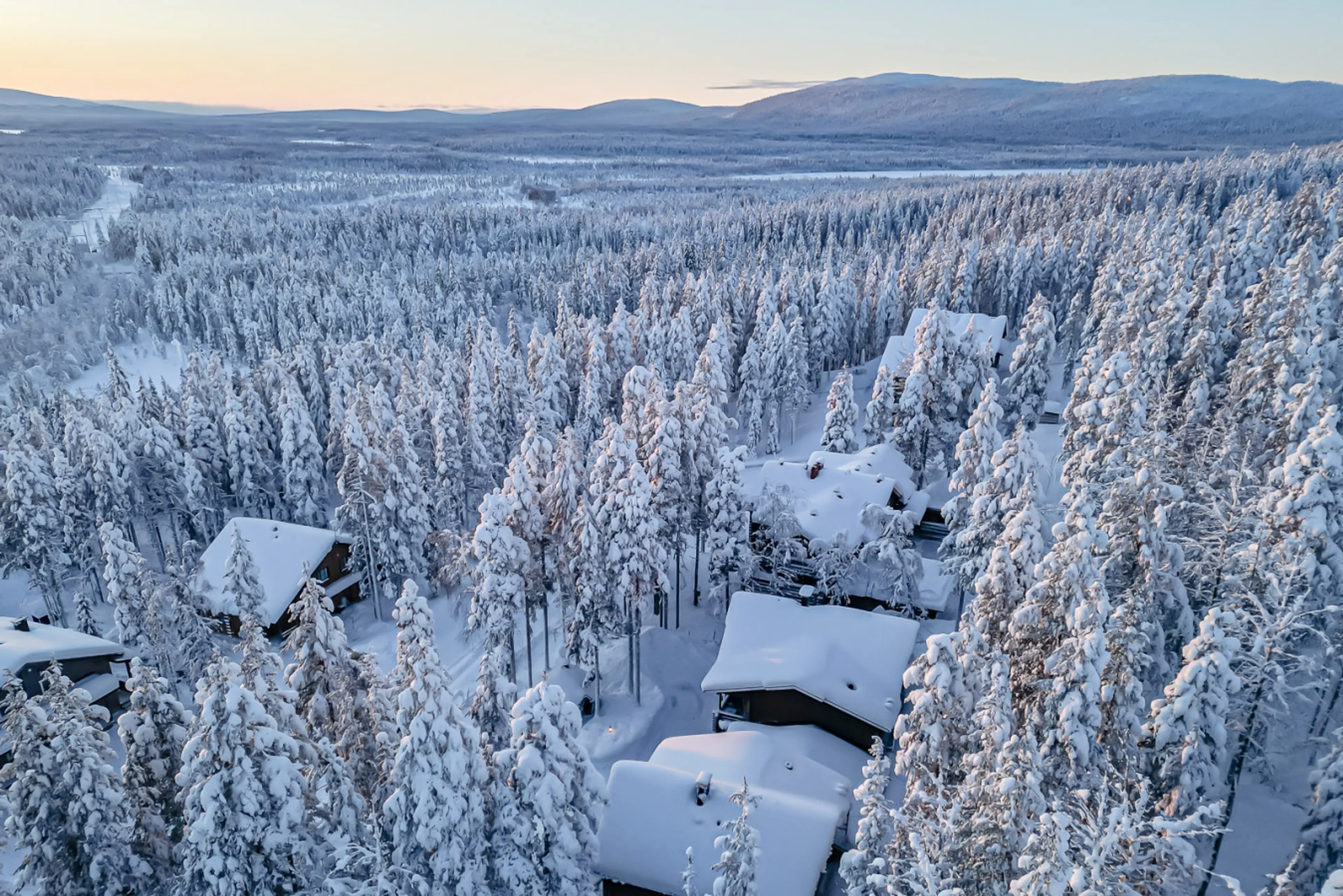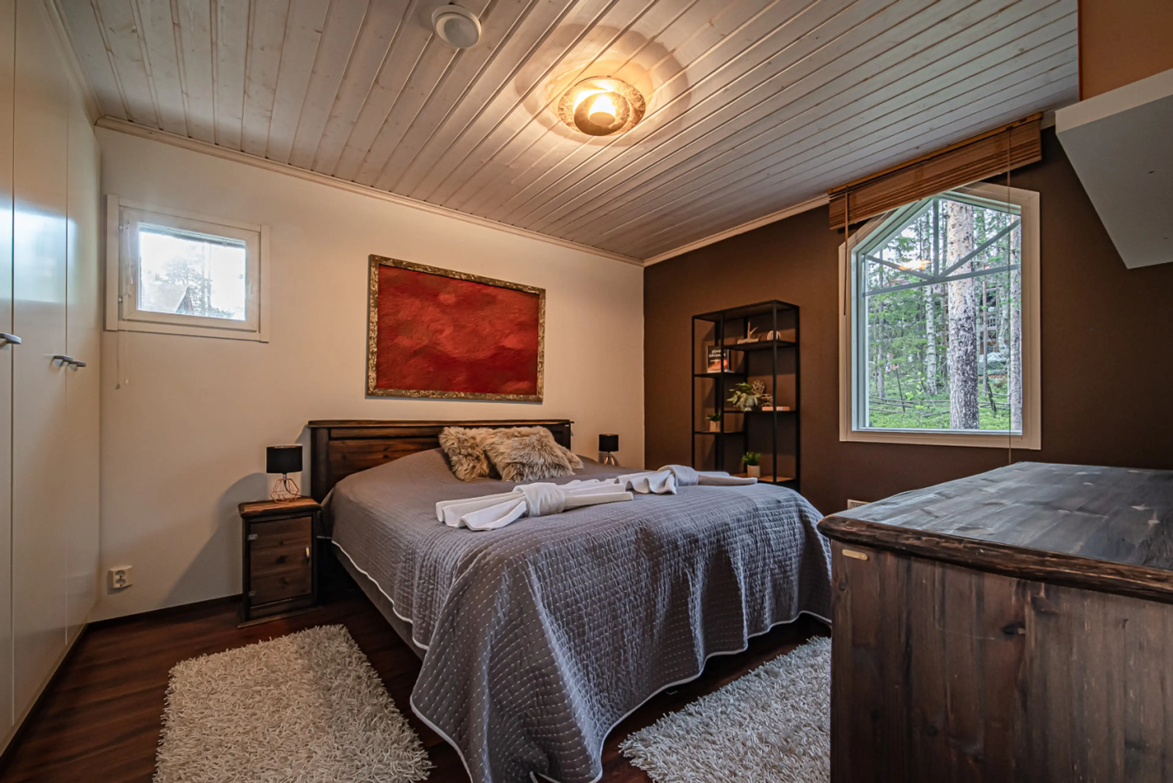 Levin Taiga 18A | Spacious and cozy 143m² two-story semi-detached cabin in Levi’s South Slopes, surrounded by nature and just steps from the ski slopes. Comfortably accommodates up to six guests. The large windows open up to the magical landscapes of Lapland, where absolute silence and untouched na...