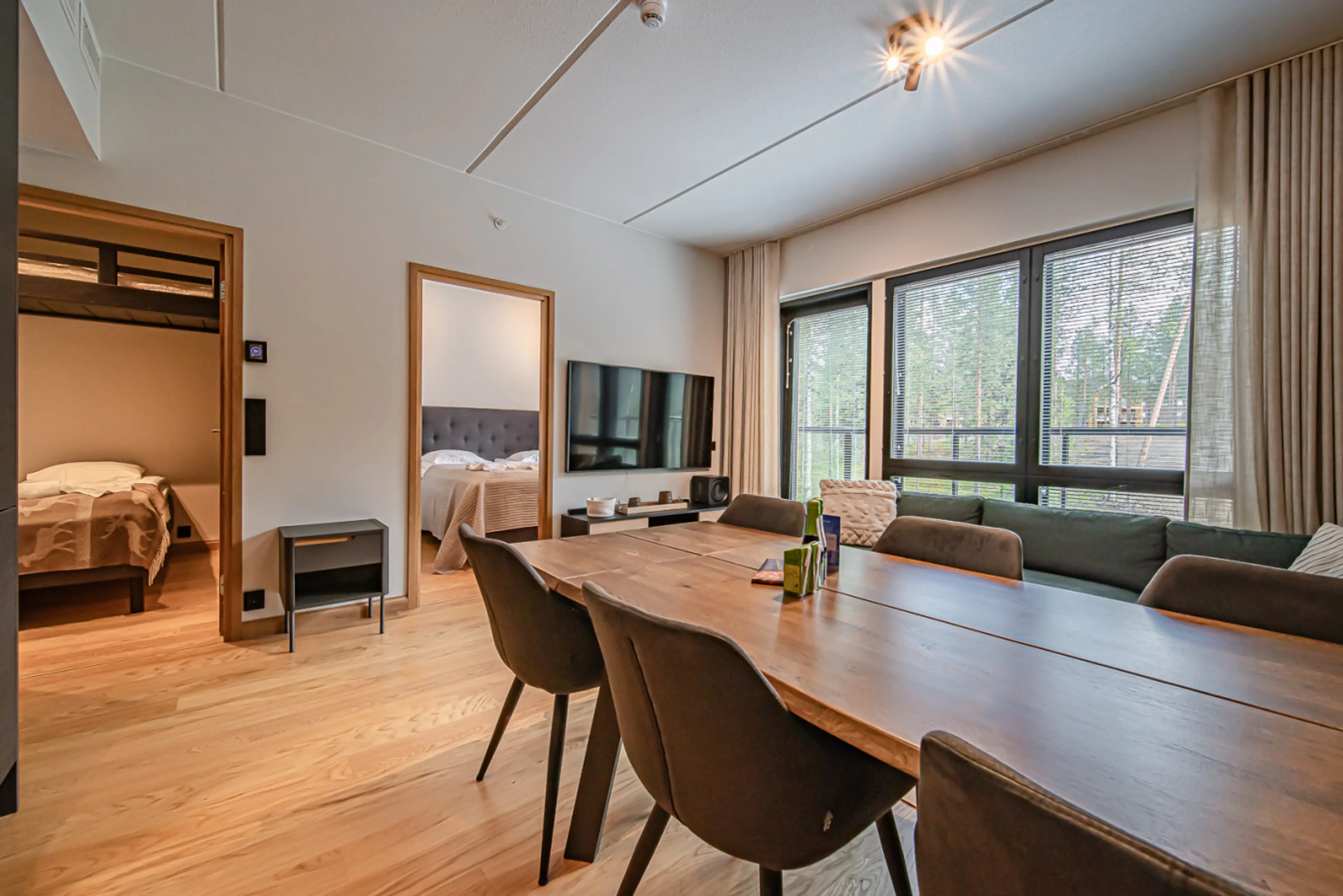Positive: Brand new building with underground car park that was really warm. Get out of the car and the lift takes you to your room! You can also put your skis on at the door and get on the ski lift! Great view front and back. Taking everything into account this is probably the best place we have stayed in Levi