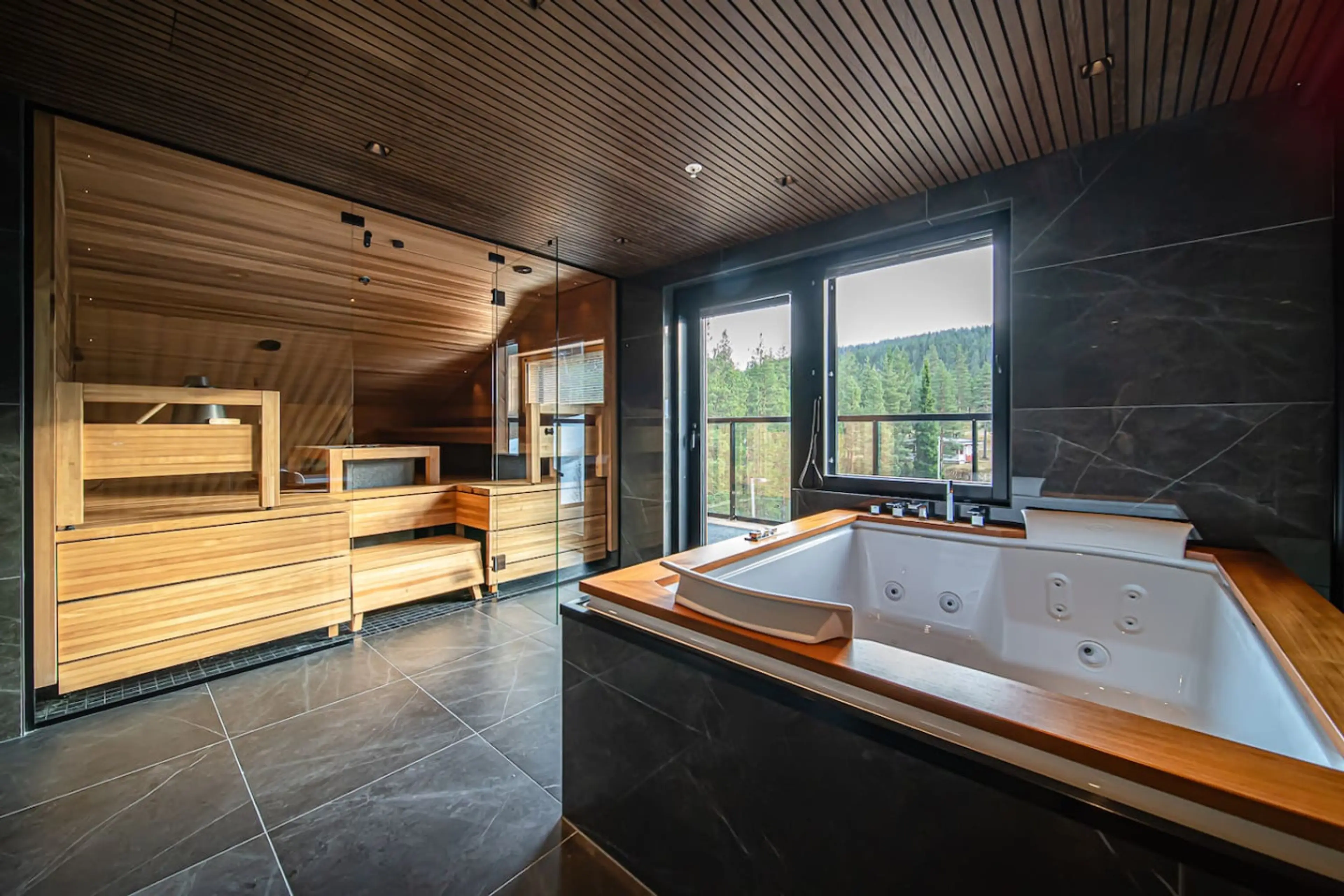 Luxury Holiday Living by the Slopes in Levi center Enjoy luxury holiday living in this stunning two-story penthouse apartment, located right next to the ski slopes of Levi. With a total living area of 223 m², this exclusive residence combines modern Nordic design, premium materials, and breathtakin...